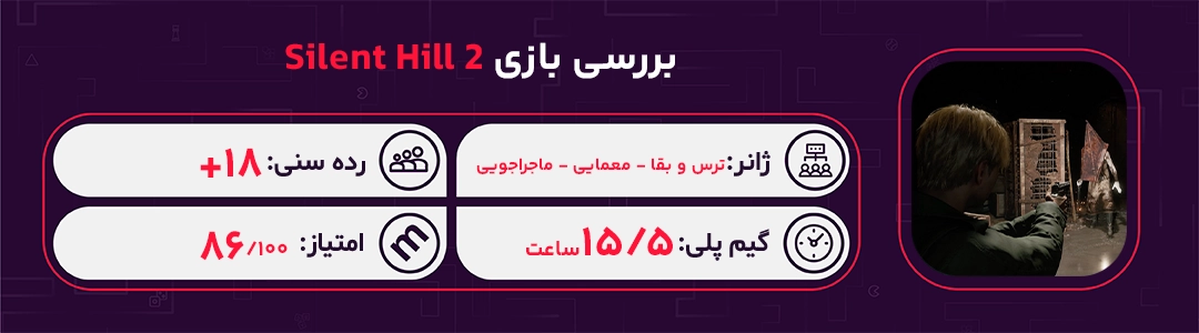 اگه دنبال یک بازی هستی که ذهنت رو درگیر کنه و داستانش با احساساتت بازی کنه، سایلنت هیل ۲ باید توی لیستت باشه، با تجربه بازی سایلنت هیل وارد یک مثلث میشید، اضلاع این مثلث احساسات، درگیری ذهنی و ترسه که قراره حسابی شما رو سرگرم کنه، همین الان میتونی این محصول رو از گیم رنتر خریداری کنی و هر جا دچار مشکل شدی با پشتیبانی چت آنلاین ارتباط بگیری تا به بهترین شکل راهنماییت کنیم.