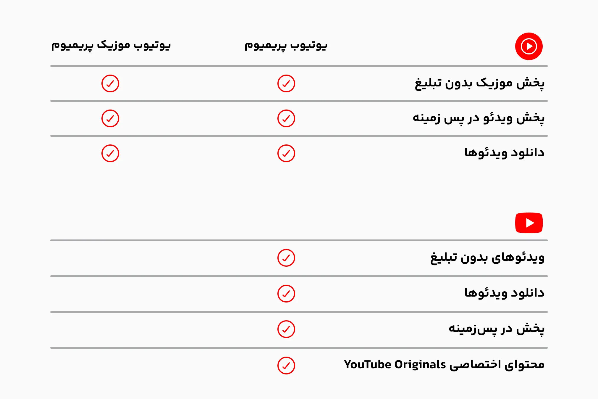 یک سرویس مبتنی بر اشتراک هست که توسط YouTube ارائه میشه و دسترسی بدون تبلیغ به محتوا، پخش ویدیو در پس زمینه و دانلود محتوا با کیفیت بالا برای پخش آفلاین رو به کاربرها میده.
